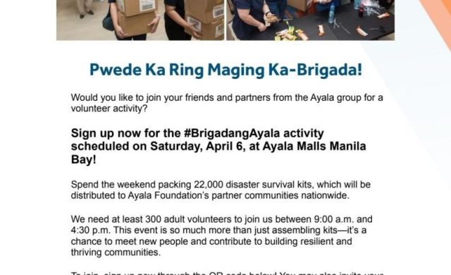 Would you like to join your friends and partners from the Ayala group for a volunteer activity? Sign…